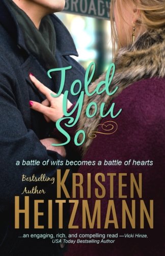 16 of 16 people found the following review helpful. Kristen Heitzmann Absolutely Excels With This Book! By Susan Snodgrass I seriously do not think I have the words to describe how much I loved this book! Kristen Heitzmann has long been a favorite author of mine, reading some of her books twice. When I saw this one was coming, I was very happy to be able to read a wonderful book by her. And I was not disappointed.Told You So is set in New York City. Devin is a play producer and Grace is a novelist. She writes books, romance books where the woman waits for marriage. She pitches one of her books to Devin, hoping he'll produce it as a play. He shrugs it off, offending her, and she throws a glass of tea in his face. Not a great start, is it?I won't include any spoilers here and ruin it for those who haven't read the book. But this book is pure gold. Seriously. The reader is drawn in immediately and can't bear to leave the book for long. Devin and Grace are thrown together once again for an unrelated project and must be civil to each other for the sake of another.Kristen Heitzmann has the unique ability to craft characters that seem to take up residence in a reader's heart. These characters are real, not just a character on a page. We feel their pain, disappointment, joy and heartbreak.This is not a fluffy Christian novel. It is at times gritty, painful and dangerous. But it's real. As God is real. Things don't always happen the way we want them to, But God is never far from us, even during the bad times. His grace and mercy and love never fail.I highly recommend this novel. I am so glad Kristen wrote this. AND...there is another coming in the series.*I was given a copy of this book by the author in exchange for my honest review. All opinions are my own and are honest.